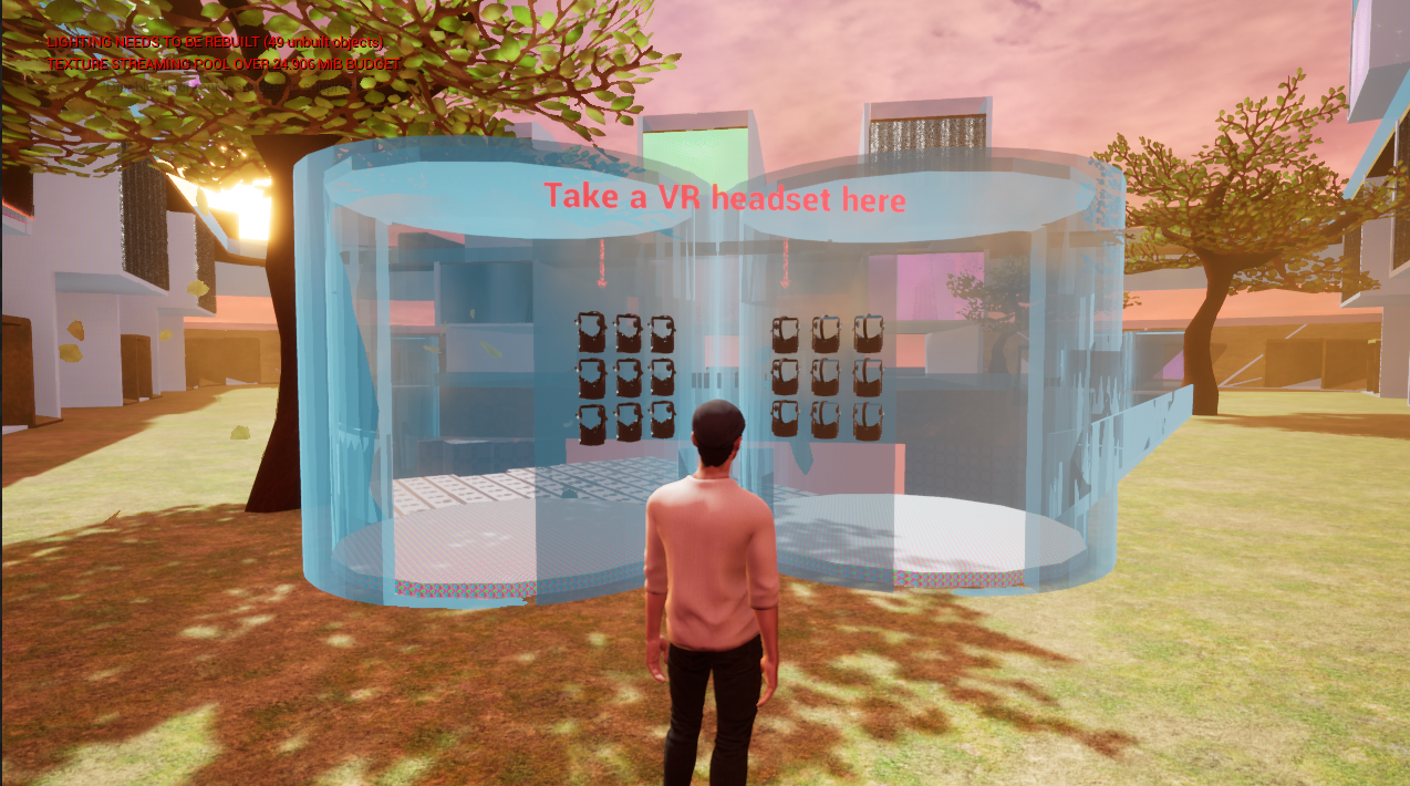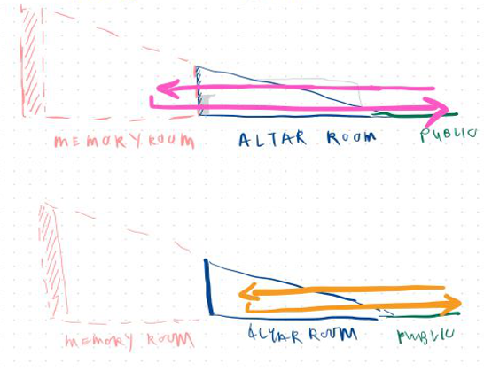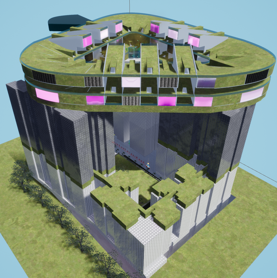 An open, multi-storey roof park sits above every HDB building. Residents/visitors who wish to connect with the deceased will wear a VR and the same tracker device to enter an assigned room to engage with the virtual avatar. The altar room acts as a therapy room where the virtual avatar only behaves in positive and constructive manner. When negative emotions are detected in visitors, the avatar will be prompted to console the visitor. Positive memories with the deceased can also be replayed in the altar rooms.
