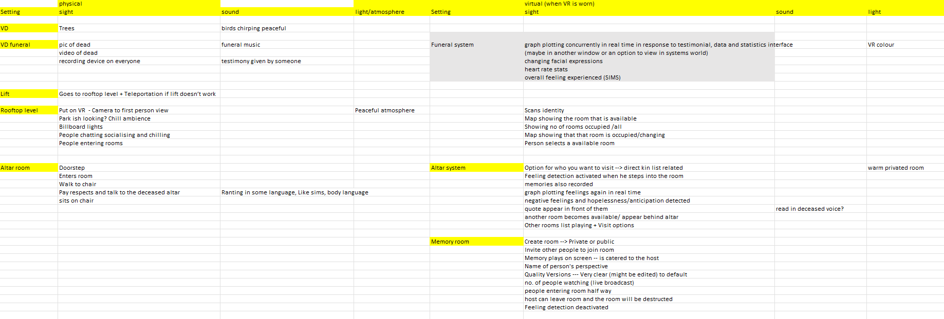 In the far future, funeral wakes will continue to be held at HDB void-decks. A special device extracts memories recalled by speakers during their testimonies for the deceased and tracked the emotions experienced by the speaker through their biological responses such as facial expressions, heart rate variations, tone, body temperature, and more. The same device can also be worn by other participants to track their emotional responses to a told story. The AI system creates the virtual persona of the deceased based on all the positive memories of him.